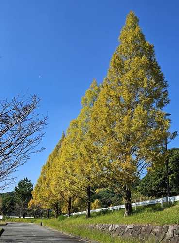 14日に藤枝市郷土博物館で「蔦屋重三郎展」を見たことを書きましたが その前に「運動公園のメタセコイヤが色づいてるかも知れないから行こう」って夫が言い出しました。まだじゃないの~?って思ったけど 蓮華寺池公園に行くならついでだからって。ついでになるかなぁ(^-^;こんなお天気に家にいるのは勿体ないぽかぽか陽気なので とにかく運動公園へ街路樹のイチョウはレモン色なのだけど、メタセコイヤはまだ早かったです。「駐車場はガラガラなのに、何でこんな遠くに車を置くのよ」と文句を言いながら歩く(笑)山は秋色でも、紅葉は見られません。ここは「藤枝MYFC」のホームグランド。サッカースタジアムです。散歩を少しして、目的の蓮華寺池公園に到着12時になったので「とんがりぼう」でお昼を食べました。蓮華寺池公園の景色が見えるカウンター席には 蘭字の輸出用お茶ラベルのポスター。古い時代のものって、今見てもお洒落で素敵ですよね夫も私も「おむすびランチセット」にしました。おむすびの具を2つ選び、飲み物は 冷たいお茶、紅茶、ほうじ茶、または温かいものを選びます。私は生姜の佃煮と あんだーすー(沖縄の甘い油味噌)にして緑茶や紅茶は飲むことが多いので 温かいほうじ茶にしました。具沢山のお味噌汁も、豆皿のお惣菜も美味しかった日本人で良かった、と思うお昼ご飯気温の高い日だったので、夫は冷たい紅茶が美味しいと言ってた。でも おむすびの具はシイタケはわかるけど 何故おかか?こういうお店では 普段食べないものを私は選ぶんだわ(*^^)v美味しく食べて それから藤枝市郷土博物館に行き、2人でお散歩しても 今はやたらとベンチで休憩する年寄りになっちゃったけど自然も、お腹も、蔦屋重三郎展も満喫して帰宅しました