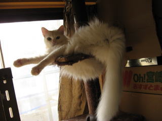 タワーの上で両手を伸ばして寛いでる純♂タワーの上で自分の尻尾を取ろうとしてるのかな?我が家の敷地にある桃の木~やっと、やっと、蕾が脹らんできたよ~。そこそこの蕾が付いてますよ~。でもね、何にもしないから、桃は大きくならないです。大きくなったら、カラスが先に突っついてます。(我が家から、少し離れた場所に桃の木はあります。)15日は何かあったかな??今朝の最低気温は2.8度~。最高気温21.5度。朝は{{{{(+_+)}}}}寒ううぅ~かった。朝から晴れ~~。ポカポカ陽気の日中になりました。様子見(=^-^=)達は、ウンチッチ♂スリリン♀ふく♀ホワイト♂あい♀の5匹毎日の飲み薬(=^-^=)達は、ウンチッチ♂スリリン♀ふく♀ホワイト♂の4匹4匹の薬は、缶詰に混ぜてます。只、スリリン♀は缶詰を食べないことが多いから、薬を飲ませることが難しいです。2日に1回の薬はあい♀旦那がシッカリ持って、σ(^_^)アタシがシリンジで飲ませてます。まだまだ手がかかってます。申し訳ないですが、暫くは、コメントへのお返事は無理みたいです。度々で、ごめんなさい。