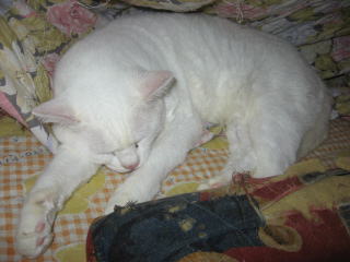 今日10月17日は健♂3歳の誕生日!オッドアイの健ちゃ~~ん、お誕生日オメデト♪(*⌒ー⌒)o∠★:゚*PAN!健♂尻尾膨らませてるけど、追いかけっこしてたの~?手前は健♂手足を伸ばしてゆ~ったりしてる。その後ろは、同じオッドアイの純♂が横になってる。2009年当時の健♂もう仕草が可愛くて可愛くて~~。^^16日は何かあったかな??今朝の最低気温は10.7度~。最高気温は26.4度。朝から晴れたり曇ったり~。朝は寒く、日中は暑くなって、身体がまだついていってない~。体調はイマイチだなぁ~。はぁ~・・・(´・`)。。。右手を置こうとした所へ、エルを追いかけて、華が走って突っ込んできた~。見事に?手の甲と手首の所へ当たっちゃいました。( p_q)エ-ン右手の甲は腫れて、手首は痛い~~。湿布貼って、その上からサポーター付けてるけど・・・。明日には腫れもひいて、手首の痛みも治まってるといいんだけど・・・。m(._.*)m ゴメンネ。皆さんのところへお邪魔できなかったです。様子見(=^-^=)達は、ウンチッチ♂スリリン♀ふく♀ホワイト♂あい♀の5匹毎日の飲み薬(=^-^=)達は、ウンチッチ♂スリリン♀ふく♀ホワイト♂の4匹4匹の薬は、缶詰に混ぜてます。只、スリリン♀は缶詰を食べないことが多いから、薬を飲ませることが難しいです。二日に1回の薬はあい♀旦那がシッカリ持って、σ(^_^)アタシがシリンジで飲ませてます。まだまだ手がかかってます。申し訳ないですが、暫くは、コメントへのお返事は無理みたいです。