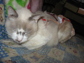 僕、寅♂です。かあさんが帰ってきたから、安心して寝子になってます。^^そうそう、僕のかあさん、実家に行く道中や帰りの道中、「踏んだり蹴ったり~」と言って、…( ̄。 ̄;)ブツブツ言ってますよ~。理由は、かあさんから聞いてね。28日の実家行き、岡山からJR特急『南風』に乗ってたら、急に走りがスローになり停車駅でない駅に停車!(・・。)…ん?(^^?)なぜ?車内放送があり、前を走ってる普通列車が「人身事故」で、救急車や警察がきてますので、検証が終わるまでは、停車しますとのこと。事故があったのは、午後3時14分。その2~3分後に停車。1時間強の停車で、午後4時16分にやっと発車。これで1時間強遅れでも、帰れる~と思ってたのも、束の間!ナッ・・ナントッo(*'o'*)oこの列車は、『高知止まり~』(゜゜;)エエッ~~冗談は(´□`;) ヤメテー!!帰りがどんどん遅くなる~~。で、高知からは各駅停車で目的駅まで~~。午後5時31分着が午後7時33分に駅に着いた!もう、すんご~~く疲れました。29日の帰りも・・・。明日に続く~~。疲れてε= (++ ) バテバテ!!m(._.*)m ゴメンネ、お邪魔することができないです。28日は何かあったかな??今朝の最低気温は15.2度~。最高気温は23.4度。朝から晴れたり曇ったり~。日中は暖かかったです。様子見(=^-^=)達は、ウンチッチ♂スリリン♀ふく♀ホワイト♂あい♀の5匹毎日の飲み薬(=^-^=)達は、ウンチッチ♂スリリン♀ふく♀ホワイト♂の4匹4匹の薬は、缶詰に混ぜてます。只、スリリン♀は缶詰を食べないことが多いから、薬を飲ませることが難しいです。二日に1回の薬はあい♀旦那がシッカリ持って、σ(^_^)アタシがシリンジで飲ませてます。まだまだ手がかかってます。申し訳ないですが、暫くは、コメントへのお返事は無理みたいです。
