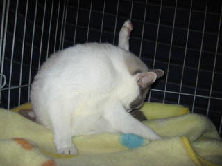 シロッチ♂ケージの中で、毛つくろい中。 気になるところは、丁寧に毛つくろい中で~す。シロっち~~ゃん、綺麗になったかなぁ~?4日は何かあったかな??今朝の最低気温は16.0度~。最高気温は25.9度。朝から晴れ~~。青空が広がった、秋晴れ~の一日でした。様子見(=^-^=)達は、ウンチッチ♂スリリン♀ふく♀ホワイト♂あい♀の5匹毎日の飲み薬(=^-^=)達は、ウンチッチ♂スリリン♀ふく♀ホワイト♂の4匹4匹の薬は、缶詰に混ぜてます。只、スリリン♀は缶詰を食べないことが多いから、薬を飲ませることが難しいです。二日に1回の薬はあい♀旦那がシッカリ持って、σ(^_^)アタシがシリンジで飲ませてます。まだまだ手がかかってます。申し訳ないですが、暫くは、コメントへのお返事は無理みたいです。