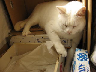 箱好きだけど、普通の猫のように、飛んだり跳ねたり、普通に歩くことができないから、高い場所の箱だと、入れないにゃ~。なので、カーペットの上に箱を置いて貰ったにゃ~。これだと僕、寅♂でも、入れるんだにゃ~。8日は何かあったかな??今朝の最低気温は11.3度~。最高気温は25.6度。朝から晴れたり曇ったり~。朝方は寒かった~。でも、日中は気温が上がって、過ごしやすかったです。様子見(=^-^=)達は、ウンチッチ♂スリリン♀ふく♀ホワイト♂あい♀の5匹毎日の飲み薬(=^-^=)達は、ウンチッチ♂スリリン♀ふく♀ホワイト♂の4匹4匹の薬は、缶詰に混ぜてます。只、スリリン♀は缶詰を食べないことが多いから、薬を飲ませることが難しいです。二日に1回の薬はあい♀旦那がシッカリ持って、σ(^_^)アタシがシリンジで飲ませてます。まだまだ手がかかってます。申し訳ないですが、暫くは、コメントへのお返事は無理みたいです。