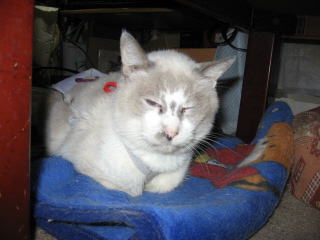2003年10月15日にデコ♀ボク♂姉弟(兄妹)を保護した日~。町内にあるスーパーのビニール袋に入れられて、我が家の敷地に捨てられてたよねぇ~。今年で9歳になります。2003年当時の手前デコ♀と後ろにボク♂2003年のデコ♀現在のデコ♀殆ど変わってないよねぇ~。病気もなく、スクスクと育ったねぇ~。2003年のボク♂現在のボク♂太ったよねぇ~。デカいボクになったねぇ~。^^14日は何かあったかな??今朝の最低気温は11.21度~。最高気温は19.6度。朝から曇り空。気温も上がらず、寒い一日になりました。寒くなったので、冬支度~~。居間にはホットカーペットを敷いたョ。これで急に寒くなっても大丈夫!いつでも電源を入れることができる~。コタツには、薄いカバーを掛けてる~。猫達のケージには、ひざ掛け毛布が入ってるけど、寒がり猫もいてるので、『あったかマット』を入れたよ~。これで様子見です。寒い日が続くようになると、猫達が寒そうにすると、ケージの中には、ミニホットマット(座布団サイズ)を入れます。今日はお昼前から猫達の雑用をやってて、思ってるより時間がかかって、皆様の所へ、お邪魔することができなかったです。m(__)m様子見(=^-^=)達は、ウンチッチ♂スリリン♀ふく♀ホワイト♂あい♀の5匹毎日の飲み薬(=^-^=)達は、ウンチッチ♂スリリン♀ふく♀ホワイト♂の4匹4匹の薬は、缶詰に混ぜてます。只、スリリン♀は缶詰を食べないことが多いから、薬を飲ませることが難しいです。二日に1回の薬はあい♀旦那がシッカリ持って、σ(^_^)アタシがシリンジで飲ませてます。まだまだ手がかかってます。申し訳ないですが、暫くは、コメントへのお返事は無理みたいです。
