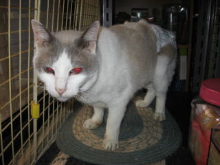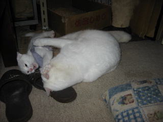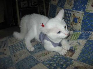 またまた、白子猫のクイズ~~やっちゃいます。^^って、7月に増えちゃいました~。``r(^^;)ぽりぽり 問題は5つです!1.新入り猫は2.兄弟(姉妹)は(前回の画像の使い回しです。^^)3.名前は(猫のおっさんと決めました!)A ハルB アキC フウ4.性別はA ♂(オス)B ♀(メス)5.尻尾はA 長いB 短い正解者の方には、いつもと同じような商品になりますが、送りま~す。(国内限定)(正解者多数の場合は、抽選とさせて頂きます。m(__)m) 締め切りは、28日日曜日午後11時59分です。分らないなぁ~と、思ったら当たってるかも~と思った“〆(^∇゜*)カキコ♪に乗っかったりしての参加もOKです。^^ご参加、お待ちしてま~~す。(*・.・)ノ ヨロシクニャン・:*:・゜'★.。・:*:・゜'☆♪24日は何かあったかな??今朝の最低気温24.9度~。最高気温34.8度。朝から、晴れ~~。風もなく、今日も蒸し暑い一日になりました。様子見(=^-^=)達は、スリリン♀ふく♀ホワイト♂デコ♀ボク♂の5にゃん毎日の飲み薬(=^-^=)達は、スリリン♀ふく♀ホワイト♂デコ♀ボク♂の5にゃん5にゃんの薬は、缶詰に混ぜてます。まだまだ手がかかってます。申し訳ないですが、暫くは、コメントへのお返事は無理みたいです。