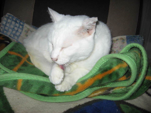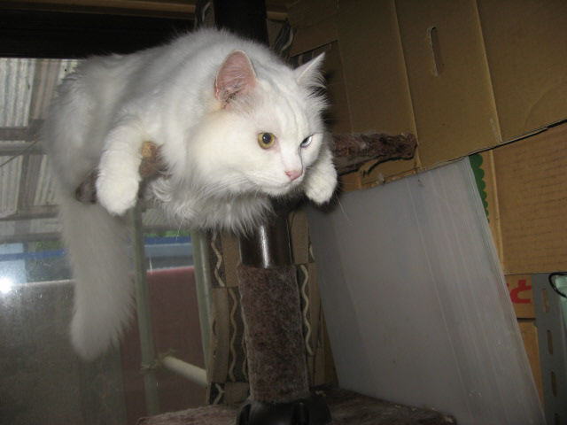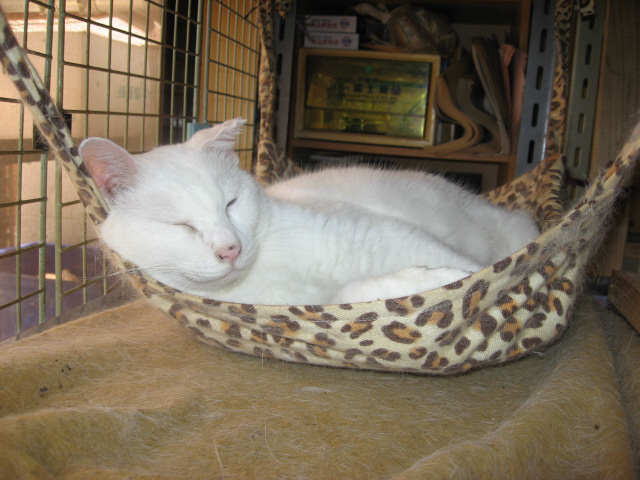 近頃はのにゃんモックは、大人気~~。窓を開けてるから、外が見えるから気にいってるのか?にゃんモックにいる時間が長いよねぇ~。オッドアイにゃんこサチ♀蘭♀ブルーのお目目にゃんこあい♀は寝子~大♂大変遅くなりました。m(._.*)m子にゃんこクイズのプレゼント商品を今日24日午後2時前に、郵便局の窓口から発送しました。定形外発送なので、近い県だと2~3日で、遠い県だと3~4日はかかると思います。申し訳ないですが、到着しましたら、届いたよ~のご連絡をお願いします。m(._.*)m(*・.・)ノ ヨロシクニャン・:*:・゜'★.。・:*:・゜'☆♪24日は~~最低気温19.0℃最高気温31.9℃朝から、晴れ~~。日中は、蒸し暑かった。夕方から、小雨が降ったり止んだり。現在、午後8時半過ぎ、まだ台風の影響はでてないみたい。様子見(=^-^=)達は、ふく♀ホワイト♂ボク♂の3にゃん毎日の飲み薬(=^-^=)達は、ふく♀ホワイト♂ボク♂の3にゃん3にゃんの薬は、缶詰に混ぜてます。まだまだ手がかかってます。申し訳ないですが、暫くは、コメントへのお返事は無理みたいです。