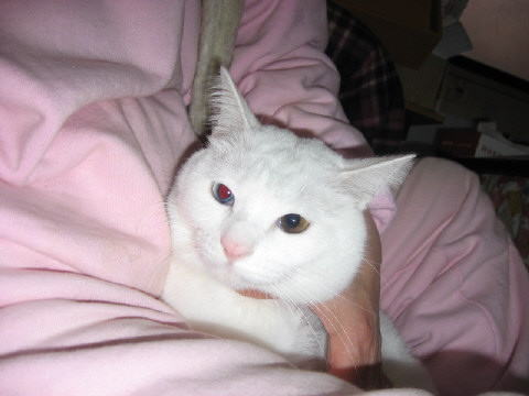 新入りにゃんこが増えたので、我が家の26にゃんこの紹介です。もう知ってるよ~という方もいると思うけど、見てd(´ー`*)ね!(24日から我が家のにゃんこ~アップしてます。本日が最終です。)25日からは、白にゃんこ~。お目目はオッドアイ~~昨日とお目目の色が逆ですョ。右目はブルー、左目は金色は4にゃんこ健♂今年で7歳蘭♀今年で5歳天♂今年で4歳マリ♀今年で3歳2015年09月17日←我が家のにゃんこ~5去年9月にアップした時は、5にゃんこに増えてたんだけど・・・。久(きゅう)♂が、突然に、幼いままでお星様になったので、又4にゃんこになりました。(*ノ-;*)28日は~~最低気温マイナス1.1℃最高気温9.7℃朝から、曇り空。今日は獣医さんとこに行くので、朝からバタバタ動き回ってる時に、母の居るホームから電話が。猫達の雑用を済ませてお昼過ぎ、獣医さんとこに行く道中から、ポツポツと雨が降ってきた~。午後1時半頃に、獣医さんとこに到着!マーブル♂の去勢手術~~。手術が終わった午後3時前に迎えに行ったよ~。(手術が終わるまで、買い物してました~)ポツポツ雨が、獣医さんとこからの帰りはシトシト雨に。獣医さんとこから帰宅後、すぐホームへ。午後5時前に到着。半年に1回の施設のケアマネージャーとの話し合い。(1時間強)その後は、母の居る所へ。話しをして帰ってきました。アチコチ移動で疲れました。お邪魔できなかったです。m(._.*)m現在雨は、ザーザーと降り続いてます。我が家の25にゃんこの紹介は2016年01月05日の日記←25匹の猫達の画像と短い紹介を書いてます。 左上の方にある『ホーム』をクリックして入ると、毎年のにゃんこの紹介も見れますョ。様子見(=^-^=)達は、ふく♀ホワイト♂ボク♂純♂あい♀マーブル♂の6にゃん猫毎日の飲み薬(=^-^=)達は、ふく♀あい♀剛♂ハル♀マーブル♂の5にゃん猫ふく♀あい♀の薬は、缶詰に混ぜてます。剛♂ハル♀マーブル♂はシリンジで飲ませてます。まだまだ手がかかってます。申し訳ないですが、暫くは、コメントへのお返事は無理みたいです。