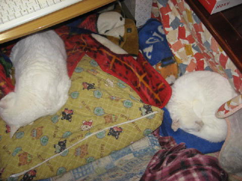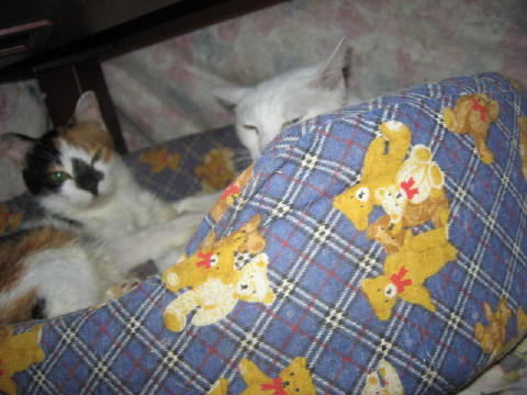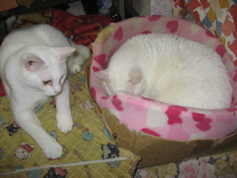 3兄妹(姉弟)だけど、みんにゃバラバラで過ごしてる~。元気♂スチール棚の一番上の箱の中でエル♀コタツカバーで遊んでた?のかな?寅♂猫ベットの中で寝子お知らせ~1月中には、今年初~~のにゃんこクイズをやりたいなぁ~なんて思ってます。^^我が家の25にゃんこの紹介は2016年01月05日の日記←25匹の猫達の画像と短い紹介を書いてます。 左上の方にある『ホーム』をクリックして入ると、毎年のにゃんこの紹介も見れますョ。9日は~~最低気温マイナス1.3℃最高気温10.1℃朝から晴れたり曇ったり。朝は冷え込んだよ~。寒い朝になりました。寒いと朝、起きるのが嫌だなぁ~。様子見(=^-^=)達は、ふく♀ホワイト♂ボク♂純♂あい♀の5にゃん猫毎日の飲み薬(=^-^=)達は、ふく♀あい♀剛♂ハル♀の4にゃん猫ふく♀あい♀の薬は、缶詰に混ぜてます。剛♂ハル♀はシリンジで飲ませてます。まだまだ手がかかってます。申し訳ないですが、暫くは、コメントへのお返事は無理みたいです。