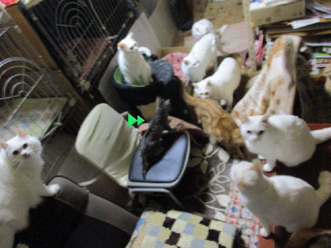 ユキ♀の動きが早すぎて、デジカメじゃぁ追いつけない~。って、動いてるにゃんこがいるとブレブレで~~す。^^ストーブの横にユキ♀何か見つけたのかな?左下は蘭♀右は天♂ユキ♀ストーブの前でガサゴソしてる(ストーブは点いてないです)ユキ♀右の方に⇒行ったので姿が見えないにゃ~白にゃんこは、ユキ♀の行った方向を見てるかな?ユキ♀右側から走って出てきたけど、勢いづいてケージに飛びついてる~。左上のユキ♀は薬の袋で遊んでる~。左下は寅♂右の白2にゃんこは、ブレて誰にゃのかわからない~。20日は~~最低気温13.7℃最高気温20.1℃寝てる時に雨が降り出したのか?朝起きたら、雨が降ってたよ~。午前10時頃には雨も上がったョ。その後は曇り空。午後から晴れたり曇ったり。暖かな一日になりました。動いてると、暑かった日中でした。様子見(=^-^=)達は、あい♀ボク♂大♂きじ丸♂の4にゃんこ毎日の飲み薬はシリンジで、ボク♂きじ丸♂の2にゃんに飲ませてます。まだまだ手がかかってます。申し訳ないですが、暫くは、コメントへのお返事は無理みたいです。我が家の25にゃんこの紹介は2016年01月05日の日記←25匹の猫達の画像と短い紹介を書いてます。 左上の方にある『ホーム』をクリックして入ると、毎年のにゃんこの紹介も見れますョ。