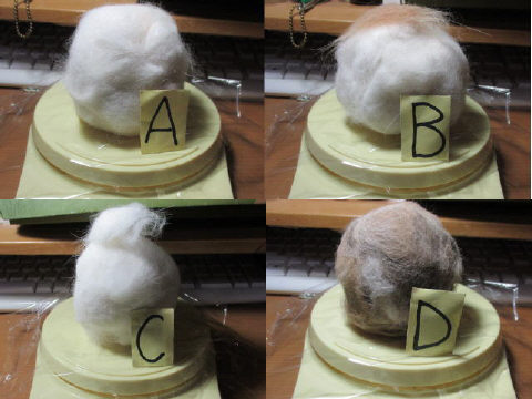 今年もやりま~す。毛玉の重さ当てクイズ~A・B・C・Dの毛玉から、重い毛玉から軽い毛玉までの順番を当ててくださいね例としてA B C Dと書いてくださいね。(ABCDは正解じゃないですョ。違う順番を書いてね。)見た目では、分かりずらいかも~~ですが。Aは天の毛玉Bは純の毛玉(目印で上に茶色の毛を乗せてます)Cはナツの毛玉(目印に上に白い毛を乗せてます)Dはミコの毛玉締め切りは、4日日曜日午後11時59分です。(今回は夜です)気持ちだけ~~ですが、プレゼントあります。(国内限定)分らないなぁ~と、思ったら当たってるかも~と思った“〆(^∇゜*)カキコ♪に乗っかったりしての参加もOKです。^^ご参加、お待ちしてま~~す。(*・.・)ノ ヨロシクニャン・:*:・゜'★.。・:*:・゜'☆♪猫じゃらしで遊んでる~でも、よそ見してるにゃんこもいますが・・・。2日は~~最低気温14.9℃最高気温24.2℃昨日の雷は、日付が変わった頃に、やっと鳴りやんだ。長~~い雷でした。今日は、朝から晴れたり曇ったり。外は風が強く吹いて、風が冷たい一日でした。外は涼しかった。少し肌寒かった。様子見(=^-^=)達は、あい♀ボク♂大♂きじ丸♂の4にゃんこ毎日の飲み薬はシリンジで、ボク♂きじ丸♂の2にゃんに飲ませてます。まだまだ手がかかってます。申し訳ないですが、暫くは、コメントへのお返事は無理みたいです我が家の25にゃんこの紹介は2016年01月05日の日記←25匹の猫達の画像と短い紹介を書いてます。 左上の方にある『ホーム』をクリックして入ると、毎年のにゃんこの紹介も見れますョ。