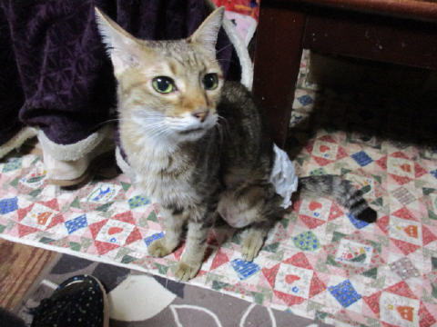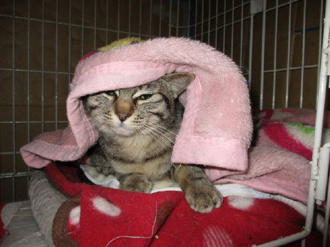 日中は蒸し暑いけど、朝晩はまだ、肌寒い日があるので、ケージの中は、まだ毛布が入ってる~。朝の気温が安定するようになれば、ケージの中も夏仕様になるよ~。ケージの中で、のんびりしたり寝たりしてる~。元気♂今日は独りぼっち~でのんびりかな?手前は雄♂奥に大♂は寝てる?手前は蘭♀手を伸ばしてるのは天♂後ろに見えてるのは、将たちのケージ手前は将♂中にアキ♀奥にマリ♀みんにゃ起きたかな?後ろに見えてるのは天たちのケージ左はマーブル♂右はホワイト♂横に見えるのは将たちケージ。ホワイトの後ろに見えるのは、天たちのケージ。30日は~~最低気温21.5℃最高気温28.6℃日付が変わった0時半頃に、やっと雷が鳴り終わり、雨もシトシト降りになったと思ったのに、深夜1時半頃から、またまた大雷が鳴りだし、稲光~。そして大雨も降ってきた~。しぶとく雷が鳴り響いてた~。午前中は、雨が降ったりやんだり。午後からはたま~に薄日も射す、小雨もパラつく空模様。蒸し暑い一日になってます。昨日から雷注意報に、大雨注意報がでてる。様子見(=^-^=)達は、あい♀ボク♂大♂きじ丸♂の4にゃんこ毎日の飲み薬はシリンジで、ボク♂きじ丸♂の2にゃんに飲ませてます。まだまだ手がかかってます。申し訳ないですが、暫くは、コメントへのお返事は無理みたいです我が家の25にゃんこの紹介は2016年01月05日の日記←25匹の猫達の画像と短い紹介を書いてます。 左上の方にある『ホーム』をクリックして入ると、毎年のにゃんこの紹介も見れますョ。