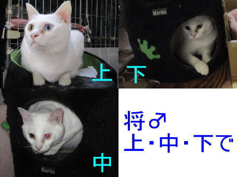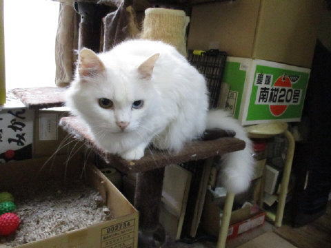オッドアイにゃんこたちが、それぞれの猫じゃらしをゲットしたよ~。マリ♀ロンボーの上で蘭♀タワーの一番上で純♂タワーのBOXの下で天♂板間の上で健♂背の低い椅子の上で10日は~~最低気温14.0℃最高気温30.9℃朝から晴れ~~。気温がグングン上がり、すんご~~く暑い日中になりました。様子見(=^-^=)達は、あい♀ボク♂大♂きじ丸♂の4にゃんこ毎日の飲み薬はシリンジで、ボク♂きじ丸♂の2にゃんに飲ませてます。まだまだ手がかかってます。申し訳ないですが、暫くは、コメントへのお返事は無理みたいです我が家の25にゃんこの紹介は2016年01月05日の日記←25匹の猫達の画像と短い紹介を書いてます。 左上の方にある『ホーム』をクリックして入ると、毎年のにゃんこの紹介も見れますョ。