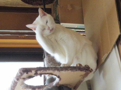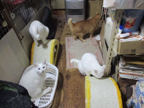 爪とぎハウス~10月の初め頃に買った時は、こんな風に使ってた~その後1週間ぐらいで、こんな風に~1つはこの場所にもう1つは、西側のスチール棚の上に~華♀ホワイト♂レオ♂雄♂13日は~~最低気温4.7℃最高気温18.2℃朝から晴れたり曇ったり~。朝の冷え込みはきつかった!過ごしやすい日中になりました。ファンヒーター、朝から午後1時頃までと、午後5時過ぎ頃から点けてたョ。様子見(=^-^=)達は、あい♀ボク♂大♂きじ丸♂ナツ♀エル♀の6にゃんこ毎日の飲み薬はシリンジで、ボク♂きじ丸♂ナツ♀エル♀の4にゃんこに飲ませてます。まだまだ手がかかってます。申し訳ないですが、暫くは、コメントへのお返事は無理みたいです我が家が25にゃんこだった時の紹介は2016年01月05日の日記←25匹の猫達の画像と短い紹介を書いてます。 左上の方にある『ホーム』をクリックして入ると、毎年のにゃんこの紹介も見れますョ。