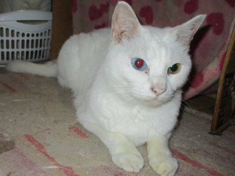 我が家にいるにゃんこたち~(16~20番目)現在は、ここに移り住んでからのにゃんこばかりです。我が家に入った順番は~16番目に、蘭♀6歳 お目目はオッドアイ17番目に、天♂5歳 お目目はオッドアイ18番目に、マリ♀4歳 お目目はオッドアイ19番目に、アキ♀4歳 お目目はブルー20番目に、将♂3歳 お目目はオッドアイ5日は~~最低気温4.6℃最高気温17.0℃朝から、晴れたり曇ったり~。朝の冷え込みはきつかった!寒すぎ~の朝でした。風は冷え冷え~外でにゃんこたちの雑用やってて、長くいればいるだけ、身体が冷えた~。ファンヒーター、朝から午後2時過ぎまでと、午後5時頃から点けてたョ。様子見(=^-^=)達は、あい♀ボク♂大♂きじ丸♂ナツ♀の5にゃんこ毎日の飲み薬はシリンジで、ボク♂きじ丸♂ナツ♀の3にゃんに飲ませてます。まだまだ手がかかってます。申し訳ないですが、暫くは、コメントへのお返事は無理みたいです我が家の25にゃんこの紹介は2016年01月05日の日記←25匹の猫達の画像と短い紹介を書いてます。 左上の方にある『ホーム』をクリックして入ると、毎年のにゃんこの紹介も見れますョ。