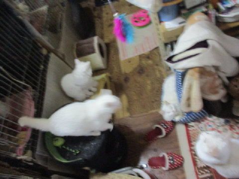 にゃんこたち~何をしてたの~?手前は大♂後ろに雄♂兄弟は、西側のスチール棚の上で、外見てたのかな?マーブル♂父ちゃんの膝の上で、フミフミ~左のハル♀と右手前の尻尾だけ~のコチャ♂は移動中ロンボーの上は剛♂ロンボー下に入ってるのはナツ♀左の爪とぎハウスの上に蘭♀茶色の爪とぎの上に天♂右のコチャ♂は移動中 その下でボケて写ってるのは純♂キッチンカウンター下のカルピス箱の前でホワイト♂二段BOX下にアキ♀2日は~~最低気温21.4℃最高気29.6℃朝起きた時は、小雨が降ったり止んだり~。その後は、晴れ間が覗いたり、雲がかかったりの空模様。蒸し暑い日中になりました。様子見(=^-^=)は、あい♀ホワイト♂レオ♂飲み薬は、あい♀ホワイト♂一日1回。目薬一日2回は、剛♂ハル♀1ヶ月~2ヶ月に一回の獣医さん通いは、あい♀サチ♀エル♀雄♂大♂レオ♂の6にゃんこお腹の調子の悪いにゃんこには、整腸剤を一日1回まだまだ手がかかってます。申し訳ないですが、暫くは、コメントへのお返事は無理みたいです。我が家が26にゃんこだった時の紹介は2018年01月07日の日記←26匹の猫達