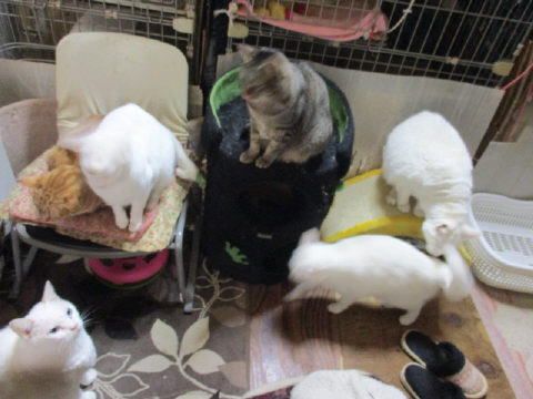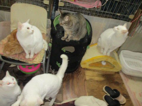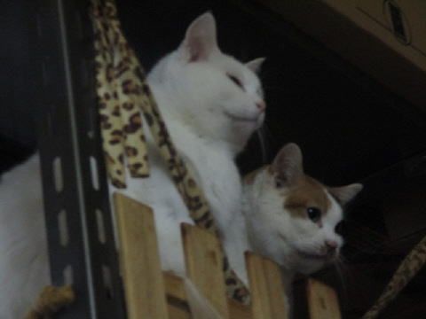 南側のスチール棚の手前にホワイト♂その横にミコ♀