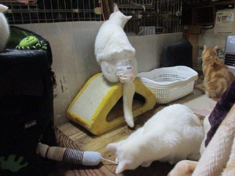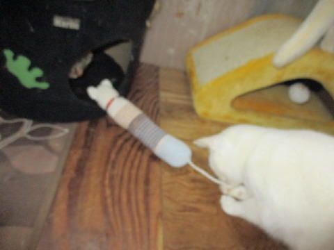 ロンボーの中のユキ♀?ハル♀?で、編みぐるみのキッカーの取り合いをしてるのかにゃ~?