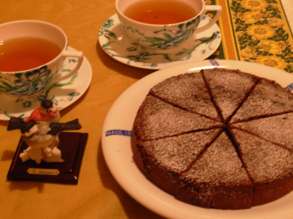 夜とったので、ちょっと画像がくらいのですが、中2の息子の作ったガトーショコラ。アップルパイやパンやクッキー同様、一人で勝手に作ってくれます。