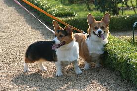 今日は、お昼すぎにみほちゃん親子が遊びにきてくれました。かいらには大興奮!予期せぬお客様ってこともあったけど、みほちゃんたちに会うのは久しぶりだから!ご近所だし、春~秋の間はお散歩中に毎日のように会えるんだけど、冬はやっぱり表で遊ぶ時間が少なくなっちゃうからね、なかなか会えなかったんだよね~。そんなわけで、男のコ二人がパワフルにNARUTOごっこをする中、かいらにはゲージで大騒ぎ。「僕も! 僕も!」って、気持ちはわかるけど、キミたち、NARUTO知らんでしょうが。私は、映画版の主題歌だけ知ってるぞ!(TUBEですから)・・・どっちもどっちだ・・・。でも、帰りがけに一緒にお散歩できて、かいはすっかり満足。吠えすぎてへろへろになりながらも、メルちゃん家の前で「僕は待つんだ!」って座り込むこと10分。あの~、寒いんですけど。こういう時は、宥めても脅してもダメだから、ひたすら待つ!もしくは強制連行(抱っこ)なんだけど、夫から抱っこ禁止令が出されているので、ただただ我慢。鼻グズグズ。それに比べて、らにはすたすたと、いえ、だだだだっ!と元気いっぱいです。上手にお散歩する練習をしようとリードを短く持って並んで速足!すると、ぐんちゃん(かいらにの異母兄弟のお兄ちゃんコギ)が、パパさんの自転車のカゴに乗せてもらってご満悦♪な所に遭遇!羨ましいのか、じ~~~っと見つめるらに。ぐんちゃんは怖いので近くには寄れないし、でも、なんか面白そうなことしてて気になるし。。。で、結局は「わんわんわんわんっ!」と言われて、即退散。更に歩くと、ナナちゃんとリンちゃんのコギ姉妹にもバッタリ。かいはリンちゃんと仲良し(?)なのだけど、らにはどうかな~? 吠えないでよ~と思っていたら。。。な~んと、すすすすすとしり込みして後ずさり!え!?いつも気が強いらにですが、お兄ちゃんが一緒じゃないと同じくらいの大きさの気が強いわんこには近づけないみたい。「な~んだ、内弁慶!」と笑ったら、すっごい怒って(通じたみたい)リードに飛び掛って、家まで猛ダッシュされちゃいました。でも面白かったので、夫が帰ってからかいらにの前で、昼間のらにを再現。すると、いたく傷ついたようで、私をじと~~~っと上目遣いで見上げながら、フテくされてゲージに入ってしまいました。あれ~~~、ごめんね、らに。だって面白かったんだもん♪かいも、実は頼りにされてるなんて知って、まんざらでもなかったよね♪