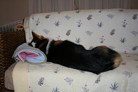 今日は雨。ず~っと雨。降り続いていたわけじゃないけど、道路は湿ったままで、お散歩はNG。こういう日は、とにかくフテ寝のかいらに。さて、らにが大好きなもの。最近よくわかりました。それはなんと、「まくら」!たとえば、フリースのマットを二枚重ねて、畳んで・・・しかも、ソファの上で。・・・おっさんみたい。太陽ぽかぽかのウッドデッキでも(今日じゃないよ)いつもの「噛み噛みおもちゃ」があごまくらになっています。今までも、玄関の上がり框やクレートのふちをあごまくらにしたり、かいのおしりをまくらにしてぐっすりzzz・・・なんてことがしょっちゅうでした。不自然な格好で、壁をまくらにして(!)寝ることもあります。こんなに好きなら、わんこ用まくら、買ってあげようかなぁ?