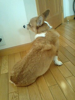 確かに、忙しくしてました。片付けしたり、料理したり。台所に私がいる時は、いつも足元にまとわりついているかいらにがいないことにも気付いてました。でも、ウッドデッキへの扉を開けておいたので、てっきり日向ぼっこしてるんだと思ったんです。ふと、違和感を(ようやく)感じて和室の方を見ると・・・和室への仕切りに向かって、挙動不審ならに。中に入りたいけど、この仕切りが怖くて入れない・・・けど、すっごくすっごく入りたい~!そんなオーラがびしびしと伝わってきました。和室なんて、パタ練マットくらいしか置いてないじゃん・・・ボールで遊びたいのかな??? なんて覗き込むと。茶色い物体が、座りこんでました。目の前には、りんごのほんの一口分が転がって!!!今日は古紙回収の日。長野から送ってもらったりんごの入った段ボールを出すため、中身のりんごを置いておいたんでした。でも、かい&らには和室には入らないから(仕切りが怖い)って、安心してた私がバカだった!で、結果、我が家にポニョがやってきました。茶色だけど。おなかパンパンです。たぶん、食べたのはりんご1個だと思うんだけど。。。もしかして、2個目だったらどうしよう。。。獲物を飲み込んだヘビのように、ひたすらぐ~たらして消化に専念するかい。時々「うぐっ」っとなるので、戻すかなぁと編み物をしながら横目で観察。でも、何事もなくしばらくすると元気に走り回りました。よかった。もちろん、お昼ごはんは抜き!!!置きっぱなしにしたママも悪いけど、盗み食いするかいだって悪いんだからね!!!