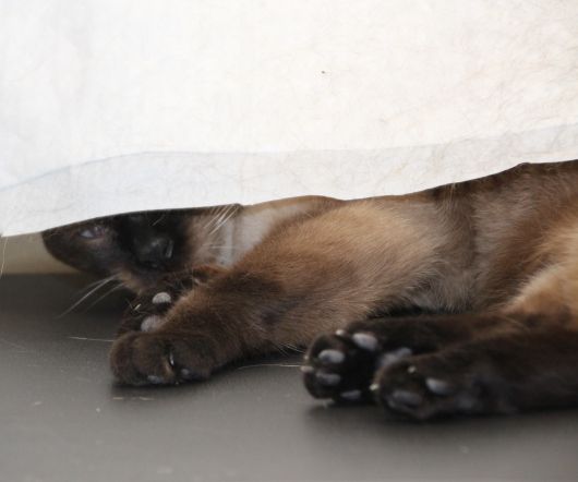 CDラックの上の壁に、マーキング防止のペットシーツを付けていますが、そのペットシーツの裏に、誰か潜り込んでいます。