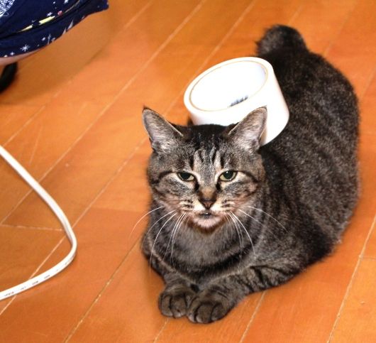 ボンちゃん、背中に養生テープが乗ってるよ。