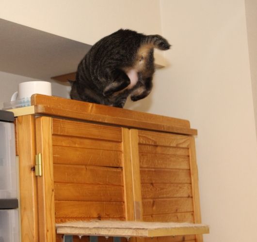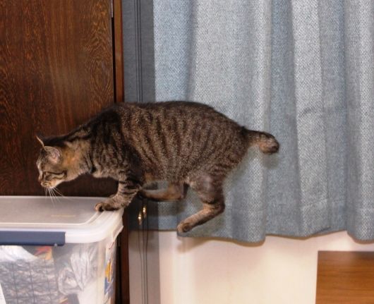 ボンちゃん、短い脚に、ずんぐりむっくりの体型にも関わらず、以外を身軽に、ジャンプしています。