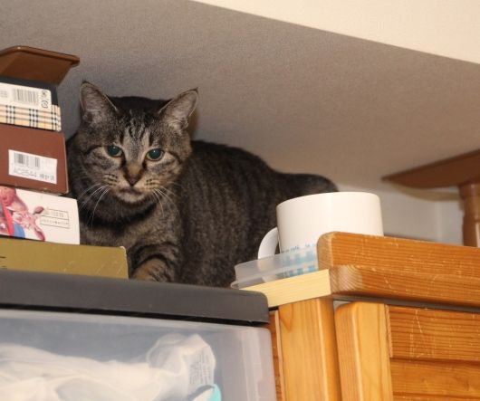 サキ部屋に足を踏み入れたボンちゃん、来たついでに、部屋のチェックを開始