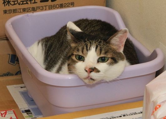 キラがスッポリと、洗ったニャンコトイレの中に填まっています。