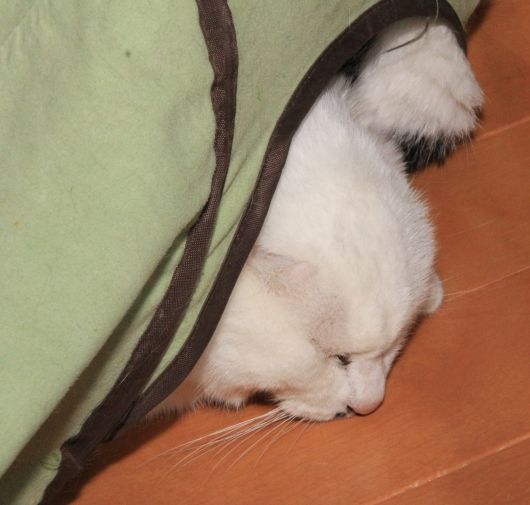 マスクと引っ付いて居るので、安心したのか、ミラママ、今は大人しく寝ています。