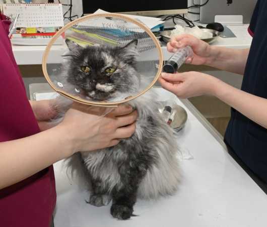 採尿した結果、顕微鏡では細菌は見られなくなりましが、本日も、抗生剤の注射を打ち、次回、二週間後に再チェック
