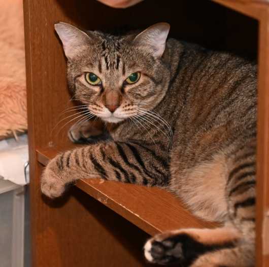 「どうしたら、美味しいオヤツを沢山貰えるのかを考えてましたニャ。」