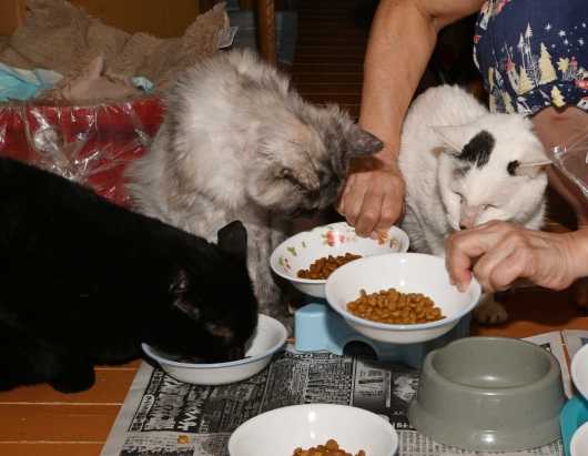 待ち切れずに、ご飯の器に首を突っ込む子もいれば、