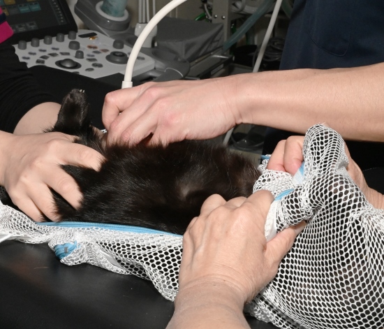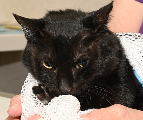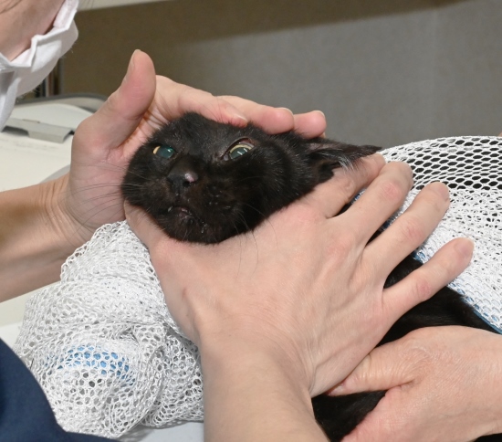本日は、皮下補液、鎮痛剤、抗生剤、ビタミン剤などの注射を行い、近々、手術の予定です。