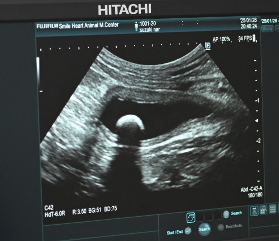 実は、以前から膀胱の中に結石があることは判っていましたが、採尿ができなかったので、ストラバイト結石なのか、シュウ酸カリシウム結石なのかが判らず、先ずは、ストラバイト結石と仮定して食事療法で溶けるかどうか、様子を見る事にしており、正に、来週、通院予定でした。