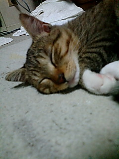 写真はなんだか笑ってしまう顔ですが、しんどくて寝込んでいるみゅうです。
