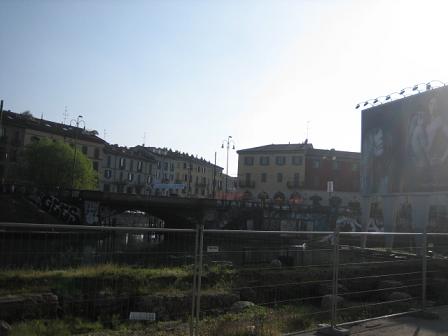 何度もスミマセン、ナヴィリオ地区です♪ミラノ市内、チェントロ部はほとんど、運河を埋め立てて道路にしてしまっているのですが、ココは、そんな近代ミラノと、昔の「水の都」だったミラノが交錯するところ。写真、右手には大きな看板があってモーダっぽい広告が飾られていたのですが、その反対側(裏手)には、道路として埋め立てられる前の、ナヴィリオ全盛(?)の頃の写真が貼ってありました。 コレがそのポスターなんですが、運河には大小の船が並び、両側にはビル群。商業都市として発展してきたミラノの歴史を垣間見ることができました。あの、ドゥオモを建築する際も、こうした船が物資や石材を運んできたといいます。そういえば、宮崎アニメの「紅の豚」、ごらんになったことありますでしょうか?舞台はイタリア。主人公のマルコが新しく飛行機を作り、当局を出し抜いて飛び立つシーンは、まさにナヴィリオが舞台。ミラノのカナルから空高く舞い上がった飛行機は、アドリア海をめざして朝日にむかって飛んでいく。。実は、最近TVで放映したときに初めて見たんです、「紅の豚」。そこで観るまでは、まさか舞台がイタリアだなんて思ってもいなかったので、思わず見入ってしまいました(笑)イタリア好きには、あの景色はアニメながら感動しますネ~・・・・さて、ナヴィリオのハナシに戻りましょう。 「ナヴィリオ」といえば、ミラノのナイトスポットとして、ティチネーゼ門界隈の運河を真っ先に思い出しますが、実はミラノではほとんどの運河を「ナヴィリオ」と呼んでいます(笑)上の写真は、ティチネーゼ門からまっすぐ南下して、ウチの近くです。このあたりは、一見なんとなく「ドブ川」みたいになってしまってますが(!)、ところどころに昔作られたような石造りの小さい橋がかけられていて、やっぱりどこか雰囲気があります。 そしてコチラはミラノの北東部、おとなりのゴルゴンゾーラとの町境にあるナヴィリオ。このあたりは、緑豊かな牧草地も多く、水も大分(?)キレイです。 ココは、両岸にちょっとした緑地帯があって、地域の人々の憩いの場所になっているみたいです。ナヴィリオが出来た当初に作られたという、レンガでつくられた水門なども残っていました。・・・それにしても、ミラノが運河の町だった、なんてやっぱり今では信じられないですよネ。