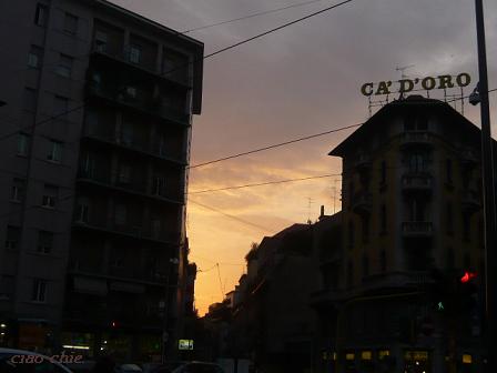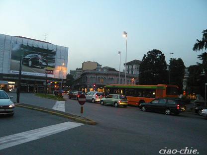 モンツァの町の中心部、ローマ広場です。ミラノからは距離にしてわずか15キロほどで、こんなに趣のある町にくることが出来ます♪その昔北イタリア一帯を手中に収め、現代における「ロンバルディア」という地名の源となったロンゴバルド一族の王国の中心地だったところ。その後、政権の舞台がミラノへ移ったあとも美しい町並みは裕福でおおらかな貴族や商人達によって守られてきました。ちょっぴり忙しいミラノの喧騒に疲れたら、ぶらっと立ち寄ってみるといい場所デス。といっても、実際の町の中心を離れるとミラノのベッドタウン。住宅地が立ち並ぶ現実もありますが、だからこそ、チェントロの古いたたずまいが余計にうれしいのかもしれません。ちょうど薄暮時。 レンガ造りの旧市庁舎、アレンガリオが、刻々と濃くなっていく空に映えてキレイ☆・・・車を馬車に、おまわりさんの制服をちょっと、中世風に想像したら、あっという間に絵本の世界。。。でしょ? 建物の1階部分はロッジアになっています。いつもの町並みも、こうしてアーチを通してみるとまた、違った雰囲気になりますネ。 アレンガリオのロッジアのそばにはこんなカフェもあります♪・・・この時間帯の、なんともいえない「黄昏色」を満喫するならココがおすすめレンガ造りの建物と石畳の道、そして日が暮れたあとに残る空の明るさ。建物の雰囲気は北イタリアの情緒たっぷりで、ちょっとだけタイムトリップした気分になれちゃいますヨ♪