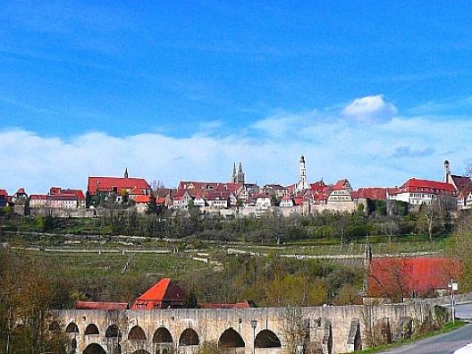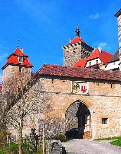 ディンケルスビュールでは、城壁の写真がほとんど無かったので、ローテンブルクの城壁を持ってきました。ディンケルスビュールは小さな街でしたが、ローテンブルクはちょっと大きな街です。「生きている中世都市」と呼ばれるローテンブルクは、1802年ナポレオン戦争のさなかに整理されてバイエルン王国に併合されるまで一国一城だったのです。(城は途中で消えたけど・・。)ドイツ連邦共和国(Federal Republic of Germany)バイエルン( Bayern)ローテンブルク・オプ・デア・タウバァー(Rothenburg ob der Tauber)城塞都市と帝国自由都市ドイツだけに出現した帝国自由都市が、必ず城壁に囲まれていたのは、もちろん外的からの防衛の為でした。帝国自由都市は、すなわち独立小国だったのです。小国がひしめく中で、決して戦乱の世ではありませんでしたが、いつ、どこぞの国から攻められて乗っ取られるかもしれない状況で、自国の防衛をおこなった結果です。もとは、城を、そして、城下町そのものも壁の内に取り込まれて広がり、商業で栄えたローテンブルクでは見事な城壁が築かれて残っています。(特にローテンブルクでは、帝国自由都市になってから人口も増えて、城壁は拡大。)城壁に囲まれたローテンブルクの街(一部)少しズームしてもまだ見えにくいですが、街は城壁の上にあります。手前はタウバー川にかかる橋です。タウバー川を望む丘の上に城塞都市はある。帝国自由都市帝国自由都市と言うのは「神聖ローマ皇帝に直属する。」と言うお墨付きをとる事により諸侯の支配を逃れた地元領主の領地の街なのだそうです。(いわゆる地元の豪族の土地)もちろん、毎年皇帝への上納金を納める事になってはいますが、実質ここは独立小国になったも同然で、地元領主は小国でも王となったわけです。(ローテンブルクはちょっと事情が違いますが・・。)こうした事はドイツ圏だけにおきた特殊な事情が背景にあったようです。歴史をさかのぼれば西ローマ帝国崩壊後のカール大帝の西ヨーロツパ統一までさかのぼる事になります。カール大帝の統一は強いものではなく、彼の孫の代には帝国は分裂、ドイツ圏の東フランク王国ではカール大帝の血が絶え、血縁のない諸侯から王を選挙して選ぶという選定侯時代に入ります。選帝侯時代の彼ら豪族はドイツ王選挙や政治駆け引きなどに振り回された時代だったようです。また、歴代ドイツ王はほぼ13世紀まで分裂していた一部、イタリアの統合に力を注がねばならず、結果ローマ法王から神聖ローマ皇帝の冠は頂いたものの、自国の管理に手がまわらなかったので諸侯の自立が加速したと言います。つまり、ドイツ王の中央集権は力不足で、結果、19世紀初めまで、ドイツには300以上もの独立国が生まれたのだそうです。メルヘンで読むような、「・・・と、ある国の王様や王子様」がたくさんいたと言う事です。(どこの王様だ? と思う問題の解決がされた気がします。)市紋コーボルツエラー・トーアタウバー川からの坂の途上にある城門コーボルツエラー・トーアを抜けるとすぐにもう一つの門を抜けます。二重門? 城壁も城門も時代とともに戦略も変わり強固に・・。10世紀にローテンブルク伯爵の城が築かれたのがこの街の起源です。城壁が最初に築かれたのは12世紀後半。その後第二次城壁、第三次城壁と城がなくなっても都市として栄えて壁は拡張。別の時に説明を入れますが、砲弾用の穴がたくさん空いており、大砲の位置が移動できるようになっている巨大で強度のある堡塁を備えた城壁です。ローテンブルクの街並。もちろんここはロマンティック街道です。なぜ日本語入りなのか・・しかも漢字入り・・・・少しつづく