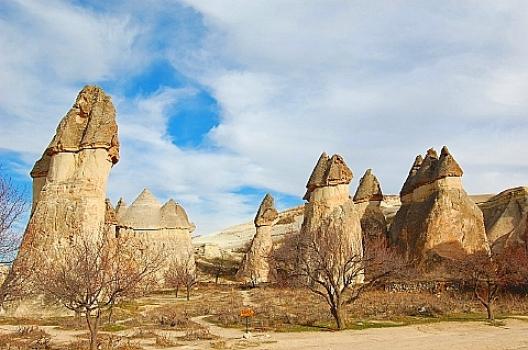 カッパドキアは、できれば一度は見ておきたい場所ですが、なかなか遠くて行ける所ではありません。(旅費は昔の半額以下になっていますが・・・。)カッパドキアまでの所要時間日本~イスタンブール(飛行機で12時間)イスタンブール~アンカラ(飛行機で1時間)飛んでバスで5時間かけてカッパドキアまで行くかインタンブール~カイセリ(飛行機で1.5時間)飛んでバスで2時間かけてカッパドキアまで行くかです。カッパドキア自体も広大ですし、鉄道も無いのでバスで延々と走る事になります。(バスにトイレは付いていません)たいていは、どこか泊まり泊まり他の観光してカッパドキアまで向かう事になります。鉄道もなく、タクシーは恐ろしく高くなるので使えません。よほど暇な学生のぶらり旅でなければ、日本から観光ツアーに乗らないと個人旅行ではなかなか難しい場所です。ただ、行ってきた人の感想は「凄かった」、「面白かった」、「感動」・・・と表現される場所ですトルコ共和国(Republic of Turkey)中部アナトリア地方カッパドキアギョレメ地方(Goreme)パシャバー地区(Pasabag)修道士の谷の教会今回はパジャバーの修道士の谷にある教会をフォトで紹介。ここは修道士の修行場所でもありましたが、かつてコミニュニティーの居住区でもあったようです。浸食がひどく住人は平野部に移住。バスを降りてまず向かうは教会? です。下の写真に「教会あっち」の看板が立っています。フォトは秋冬の方がはっきり、くっきり写るようです。教会は、どうもこのシメジのようです。入り口は裏側。帽子か? 傘か? 乗っている? ように見えますが下の岩とは断層の質の違いで生じたものです。このあたりの岩は、敵から見つからないようにもなっていますが、たいていの岩は住み込まれた跡が残っているようです。これが教会のようですが、時間がないので中に入る時間がなく見ていません。ツアーによっては忙しく滞在時間が無いので、写真を撮る方優先させました。何しろ撮るべき所が多すぎるので。たいていの見学出来る場所では、ハシゴをかけて登り降りしています。敵の侵入を容易にさせない為でしょうか? カッパドキアは全て動きやすい靴でないとダメです。次回浸食の岩を紹介して、ゼルベの谷に・・・。心は次に飛んでますが、カッパドキアはまだ続く・・・間に差し挟む