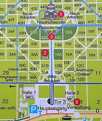 正解はウィーンの中央墓地でした芸術のパトロン・・・ハプスプルグ家の国650年近く、中欧を支配していたハプスブルク家の帝国では、その長い安定した治世にいろいろな文化芸術を生み出しています。特に音楽においては、音楽の都ウイーンと呼ばれ、多くの作曲家、演奏家が輩出されたのは(モーツァルト、ブルックナー、シューベルト、マーラー他)、王室の庇護があたからこそです。もちろん音楽だけではなく、質と量ともに最高のコレクションを誇るウィーン美術史美術館のコレクションは全てハプスブルグ家のコレクションです。(私が見た中では絵画、調度品は断トツ一番です。)ハプスブルグ家の芸術を見る目と、そのハプスブルグ家の元で文化芸術の花開いたウィーンには今もその遺産が街中あちこちに残っているのです。で、今回、最近ツーリストの観光ではなかなか行かなくなったウイーンの中央墓地です。ここには、偉大なる音楽家の墓所がたくさんあると同時に、無名でも、素晴らしい墓石彫刻がたくさんあるのです。私にとっては墓石美術館のような場所ですオーストリア共和国(Republic of Austria)ウィーン(Wien)中央墓地(ツェントラルフリードホフ Zentralfriedhof)今回は有名音楽家を中心に紹介しますが・・・無名?の素晴らしい墓石も紹介予定・・・・。礼拝所(カール・ルエーガー教会)から「Zentralfriedhof 2 Tor」のゲート方向の景色。並木は菩提樹とプラタナス。中央墓地(ツェントラルフリードホフ Zentralfriedhof)は、1874年にウィーン市内の5つの墓地を集めて造られ、た240haもの広さを持つ墓地で、約35万の墓所に300万人が眠っているそうです。ユダヤ人墓地、プロテスタント墓地、イスラム教徒墓地、等が幾何学的に区画整理されて配置されています。前回の地図をズーム(No.1から門を撮ったのが上の写真)No.・・・・32Aに注目ツーリストにとっての目玉はもちろんここです。中央墓地特別名誉区32A楽聖たちの眠る区画です。ベートーベン、シュトラウス親子、シューベルト、ブラームス、カール・ミレッカーetc・・・・。この区画外に、モーツァルトと対立したアントーニオ・サリエリ(1750年~1825年)の墓所もあります。残念ながら32Aには入れず、あの世で悔しがっているかも・・・。32Aは、偉大な音楽家の為の墓所として、集められてできています。エドゥアルト・フォン・バウエルンフェルト(Eduard von Bauernfeld)の墓(1802年~1890年)シューベルトの友人でオーストリアの喜劇作家。ブルク劇場の喜劇作家として成功。シェイクスピアやディケンズの翻訳を手がけシェークスピアの「シルビアはいかに 」を翻訳してシューベルトが作曲。32Aの墓所地図32Aの中の特上区画左からベートーベン墓、モーツァルト碑、シューベルト墓。次回アップから・・。師走の12月いろいろ忙しい時期です。それなのに、最近1回のブログの中が濃くなって制作時間がかかりすぎています・・・。1日1本の日もあると思いますので悪しからず・・・。