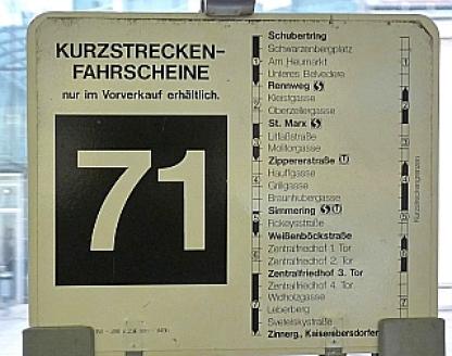 どこでしょう クイズ 前からやりたかった場所ですが、あいにく写真がありませんでした。(昔のフォトしか・・)最近頼んでいた写真が入手できたので紹介したいです。カッパドキアの間に差し込んで行く予定です。でも、まだ今回は場所は秘密です。写真の中にヒントがあるので考えてみてください ウィーン(Wien) です。下はウイーンのトラムの停留所の看板です。 オペラ座の前(Schabertring)から71番のトラムに乗ります。大きなヒントです。行き先が出ているので・・・。 行き先は、「Zentralfriedhof 3 Tor」ウィーンのトラム(路面電車)ウィーン市交通局が運営。路線総延長は188km、路線系統は32系統。ウィーンには中心市内を環状するリングが有り、一周4Km 30分と言いますが、今回はリングの外に向かいます。ウィーンは地下鉄の整備が遅れていた為、かつては世界最大のトラム(路面電車)王国だったそうです。(今は地下鉄も整備されて、トラムは補完的な役割になったようです。)旧型のトラムです。バリアフリーの超低床車の写真もありますが、またの機会に・・・。連接2両編成にトレーラー1両を連結。椅子は木製・・・・ちょっと学校の椅子みたい・・・。縦に長いのでバスより圧迫感がなくて気持ち良いですね。 目的地前の停留所に停車。乗車して30分位です。(この写真は帰りに撮影しているので、上の写真とは時間差があります。)訂正・・勘違い 「Zentralfriedhof 2 Tor」の停留所で下車です。つまりゲートの2番から入場。見れば解る人も? ここの中心に位置する・・・。 礼拝堂です。ここの見取り図ですが、中はものすごく広いです。地図は見にくいですが、下がトラムの走る道路で、真ん中右寄りに2番ゲートがあります。2番ゲートを地図の上に進んだ所に礼拝堂があります。幾何学的に構成されているなんて気づきませんでした。それにしても広い・・・・。ちょっとマニアックかもしれませんが、ここは私の好きな物がたくさんあるお気に入りの場所です。(かつて、走り回って写真を撮りまくった所です。)・・・次回から紹介します。(答えも次回)カッパドキアと交互に・・・・。