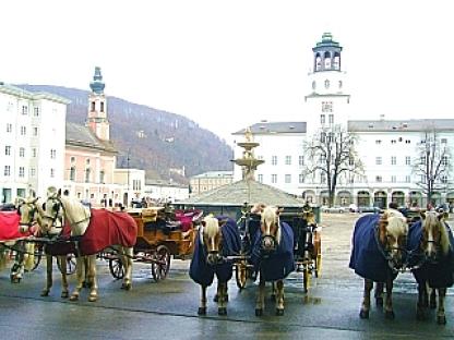 どこの国もの街も、冬のクリスマス時期が一番美しく、華やかかもしれません。街は一年に一度の特別のお祭りで飾られるのですから・・。オーストリア共和国(Republic of Austria)ザルツブルク(Salzburg)マルクト広場(Markt)中世の都市には必ずマルクト(Markt)と呼ばれる広場があり、マーケット・Market・市場という意味を持つ広場だそうです。マーケットと言うと、露天市を想像し、市民が買い物に来る市場の印象を持ちますが、中世には、マーケットは遠方から来る商人や手工業の親方等の商取引所としてあったようです。もちろん毎日ではなく、毎週1回とかの定期的に開催される商品見本市のようなものでもあり、売買契約が結ばれたりするプロの取引所です。(もっとも人が集まれば食品の屋台や酒場も集まりますが・・・・。)中世も後期に入ると、組合ができて、組合による商品の品質管理や、値崩れをふせぐ為の監視がなされ、商品は公開の場での競り市にかけられたようです。それが広場で行われ、商品の種類が増えて広場が足りなくなると、新たに広場を増やして、商品分野毎に広場分けなどもされたようです。街によっては、ワインマルクト、コルンマルクト(穀物)、ホイマルクト(干し草)と、商品名の付いた広場も残っているようです。加筆レジデンツ広場(Residenzpiatz)の意味はレジデンツの前だから・・で、レジデンツは歴代の大司教が暮らしてきた宮殿のようでした。尚、中世においては、街によっても専門性があったようで、例えばローテンブルクでは馬が扱われ、ヘルンガッセでは牛やロバが扱われたようです。さて、広場まわりから紹介。大聖堂の正面から左手にあるレジデンツ広場(Residenzpiatz)はクリスマスの準備に入る前の姿です。馬の後ろに見えるのは噴水です。寒さで凍りつき自然破壊するので冬は保護するようです。この広場の左奥にモーツァルトの銅像がかすかに見えていますが、あのあたりはモーツァルト広場です。1840年にモーツァルトの銅像が置かれてから、広場の名はモーツァルトに変わりました。モーツァルト広場では、冬の時期はスケートリンクができて市民が楽しめるようになっています。ベビー用のソリ? 遊具があるのですね。さて、レジデンツ広場ではクリスマス・マーケットの建設が始まっています。徐々に準備が進んで人の足が増えています。暗くなってからが本番です・・ちょうど夏の神社の縁日のような光景に似ているかもしれません。そんなに娯楽施設のない街なので、夜になるほど人が増えて、クリスマスまで盛り上がっていくようですね。マーケットつづく