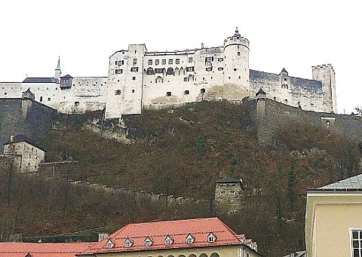あまり綺麗に撮れている写真がないので(天気が微妙で・・)迷いましたが、やはりザルツブルクのシンボルを避けて通るわけにはいかないので簡単に紹介。オーストリア共和国(Republic of Austria)ザルツブルク(Salzburg)ホーエンザルツブルク城(Festung Hohensalzburg)城ではなく、もともと防衛のために建築された要塞です。ザルツブルクの大司教が自らの身を守る為に建築。要塞の建築は1077年に始まり、その後700年間持続的に拡張、増築がおこなわれた為に種々の時代の建築様式が混在、複合した建造物になっています。歴代の大司教により増改築がくり返され、17世紀後半には、ほぼ現在の姿になっていたようです。要塞の建築神聖ローマ皇帝ハインリヒ4世と教皇グレゴリウス7世の間に起こった聖職叙任権闘争が発端。もともと古来より私領に建てられた聖堂(礼拝堂)や修道院の長の選任(叙任権)は、土地の領主(ここではバイエルン公)が持っていたわけです。(土地を与えられて教区の布教をする為に選任されているのですから・・。)当然ここの大司教、ゲプハルト・フォン・ヘルフェンシュタイン1世(1060~1088)はバイエルン公側の神聖ローマ皇帝ハインリヒ4世側に就くのが筋なのですが、自らの地位向上の為に教皇側に鞍替え・・。(バイエルン公は飼い犬に手を噛まれたと言う事になります。)結果、ハインリヒ4世と教皇は和解し、立場の悪くなった大司教がバイエルンからの報復攻撃を恐れて要塞の建築を計画。(大司教ゲプハルトは亡命)要塞建築(1077年~)は、後任の大司教らによって後に完成し、後に再び役に立つことに・・。要塞は丘の上に立っています。昔は馬とかロバで登ったのでしょうが、今はケーブルカーも設置されています。大聖堂右のカピテル広場から、2~3分です。一番高い場所(ホーアー・シュトゥック)の標高は508m。要塞の変遷・・・それは大司教の俗物化当初は、礼拝堂を塀で囲んだだけのシンプルな設計だったようです。歴代の大司教は増築をすすめ、特に大司教の政務に民衆が不満を持ち始めた15世紀、レオンハルト・フォン・コイチャッハ大司教(1495~1519)は襲われた場合を想定して、要塞の中に居住空間も完備。(かなり贅沢に。)資金は金鉱山の収益を要塞建築に充当していたようです。(工夫の不満)1525年についに農民と工夫の反乱が勃発。ホーエンザルツブルク900年の中で最大の危機だったそうですが、それでも要塞は難攻不落を実証。マティアス・ラング・フォン・バレンブルクは、反乱首謀者を処刑し、要塞に市民の攻撃を阻止する為の攻撃用の陣地、堡塁(ほうるい)を建築してパワーアップ。小銃で市民を狙ったそうです。神に仕えるべき者が・・・それも大司教がそこまで俗物化していたなんて・・・ひどい時代です歴史はだありますが、割愛させてもらいます。要塞見取り図赤い所が要塞見学コースのスタートで、その後ろに要塞レストランがあるようです。2番は、博物館とカフェになっています。写真左上のコーナーが大武器庫。ブルク博物館ではマヨルカ焼の後期ゴシック様式の豪華なストーブや武器、魔女狩りが盛んだった時期の拷問具なども展示。15世紀までは大司教の住居として使用され、それ以後は兵舎または牢獄として利用されたそうですが、確かに要塞内部は囲われた街中のようです。教会もあります。ゲオルク稜堡(りょうほ)いままでのザルツブルクの街はここから撮影。ベストスポットです・・でも昔は・・・・。稜堡(りょうほ)ホーエンザルツブルク要塞は、大砲を主要防御武器として設計した要塞のようで、多数の大砲が互いに死角を補い合うよう設計。(16~18世紀の工法で、日本の五稜郭がそれにあたるそうです。)要塞の丘の裏側方向の景色です。かなり住宅街が広がっているのに驚かされます。確かに川のほとりだけでは街が小さいすぎますよね。これが現実・・・ザルツブルクの裏側を見た気分。街はつづく
