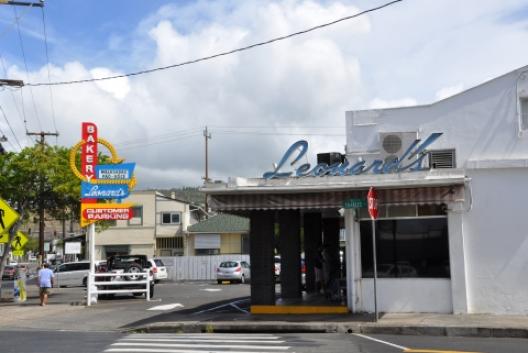 今回はハワイのB級グルメを紹介します姉によればバブルがはじけた頃から日本人の旅行者の間でにわかに流行りだしたB級グルメの一つだそうです。今後そんなB級グルメも随時発信していく予定です2011 Hawaii Now 2 (B級グルメ 1)B級グルメ 1 マラサダス(Malasadas)最近HISなどがツアーに組み込んだ為に日本人の観光客の姿をよく見かけるようになったと言います。お店の名前はLeonard's (レナーズ)。写真左がKapahulu AveLeonard's (レナーズ)はKapahulu Ave沿い、カパフル地区にある創業1952年のベーカリーです。注・・ワイキキの免税店あたりから歩くと1時間くらいかかります。午前中は観光客が並んでいます。店内は観光客向けにグッズも販売。店名入りのビニールバッグが1ドル25セントはちょっと驚きもともとベーカリーです。最近はパンなどのお値段もあがったようです。昔はベーカリーも少なかったのでローカルの人はケーキなども買いにきていたようです。日本人向けにメニューが置かれていますが、肝心のマラサダは店頭に置いていません。値段は1個90セントで州税が4.712%あるので切り上げで95セントで販売されています。マラサダス(Malasadas) プレーン3種いわゆる揚げパンがマラサダスの正体です。少し違うのが発祥はポルトガルだそうで、ポルトガル風の揚げパンと言うところです。周りに砂糖がまぶされたプレーンシナモン&シュガーがまぶされたもの最近ローカルのリヒモイ味が発売されています。(リヒモイは少しピンク色です。写真下の)リヒモイ(Li Hing Mui)中国産の乾燥した梅干に塩と砂糖、中国版リコリス(甘草)の粉がまざったのがリヒモイパウダー。昔中国からハワイに入った調味料と言われています。半分にしてみました。作業現場はマル秘のようですが、姉によれば普通に揚げパンだと言います。中はしっとりふんわりしていて普通の揚げパンとは確かに少し違います。食感に特徴があり面白いですが、この食感最近日本で食べたしっとりシュー生地に似ているかもしれません。注文してから中から運んで来るのですが、それは時間がたつと水分もあるのでしぼんでしまうからだと思います。つまり揚げたてでないと実はおいしくないのです。実際食べて見ると実はそれほどでもない・・と思う人が多いと思います。期待しないでたまたま行って食べられたら・・・まあ良いのでは?ぶっちゃけ・・・もともと地元では昔は安かったのでオフィスなどのお土産に大量買いして差し入れおやつとして使われていたようですが、最近はヘルシーブームだし、お値段も上ったので地元の人はあまり買わなくなったとか・・。ローカルで一番人気のB級グルメは以前にも紹介した事のある2009年11月に「 ハワイ特派員便り 超人気のスコーン」で紹介しているDaiamond Head Market & Grillのスコーンらしいですよ。次回最新版で紹介しますね。