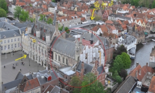 前回、中世ブルージュでは絵柄により建物が識別されていた・・と紹介したが・・。識字率は出版物の発行に比例する。良質な紙と古来から印刷術のあった日本の中世は、仮名草子や浮世草子が発行され、それらがすでにベストセラーとなるほど市民に売れて読まれていたと言うのだから驚く。つまり、日本の識字率は江戸時代にはかなり高くなっていた・・と言う事だ。案外知られていないが、活版印刷は実は東洋よりシルクロードに乗って欧州に伝えられた技術だそうだ。6~7世紀にはすでに中国で陶器の版による印刷が行われていた事が確認されているし、金属の版も見つかっている。(法隆寺には、770年頃に印刷された書物が保管されていると言う。)子供の頃はグーテンベルク(Gutenberg)の活版印刷(1439年頃)が世界初・・のように習った記憶があるがそれよりずっと前にアジアでは印刷により大量の書物が流通していた。日本においては中世現代とほとんど変わらない読み物が庶民の娯楽にまで発展していたのだから自然と識字率も高くなったのかもしれない。因みに中世以来の教会の美しいステンドグラスは、聖書の逸話を絵にして庶民に知ってもらう目的があった。それも識字率が関係している。グーテンベルクが聖書を大量印刷しても、まだ読める者が少なかったのだ。今回はマルクト広場に続いて・・のブルグ(Burg)広場の紹介です。ブルージュ(Brugge) 5 (ブルグ広場 1)ブルグ(Burg)広場旧(前)古文書館(Voormalige Civiele Griffie)旧(前)自由ブルージュ館(Voormalige Landhuis van het Brugse Vrije)自由都市ブルージュ(van het Brugse Vrije)ブルグ広場は、ほぼマルクト広場の隣でしたが、今回は魚市場(Vismarkt)から橋を渡って・・のコースで紹介しようと思います。運河沿いの魚市場、現在も朝市やフリーマーケットに使用?かつては北海から新鮮な魚が運河直で水揚げされる場所だったのだろう。魚市場(Vismarkt)の前、運河脇に立つ建物の向こう側がブルグ広場である。建物左の向こうが市庁舎になり、右の1608年と刻まれた建物の向こうが旧古文書館になっている。因みに建物に打ち込まれている鉄は飾りではなく、本来は楔(くさび)として打たれている。要するに建物の膨張などで離れるのを押さえている実用の止めなのだ。前にも紹介したが、ベルギーは極めて地図の少ない国であり、あっても解りにくいものばかり。その上隣の建物が全てひっついているので、どこまでが境界なのか非常にわかりにくい。ゲートの向こうがブルグ(Burg)広場運河を渡る。この下は観光船のルートだ。この橋から前回紹介したデュック・ドゥ・ブルゴーニュ(Duc de Bourgogne)も見える。10メートル程度の距離にあるのだ。Blinde-Ezelstr(ブリンデ・エーデル)の小路ゲートと言うよりはふさがれた建物の下をくぐり抜ける形で広場に通じている。塔は市役所のもの。ゲート自体は旧古文書館で頭頂の像はカール5世そもそも 旧古文書館はカール5世の栄誉を称え、1534年~37年頃(資料でまちまち)に建設されたとされる。ブルグ広場(南東)旧古文書館(Oude Civiele Griffie) あるいは 前古文書館(Voormalige Civiele Griffie)注 市の広報では「Oude」ではなく「Voormalige」が使われている。市の広報によればルネッサンス様式らしい。建築当初の時代で言えば確かにルネッサン様式の時代に入るようだが、修復を繰り返し現在の外観は、グラン・プラスのギルドハウス同様17~18世紀に建てられた単純にダッチ&フレミッシュ(Dutch&Flemish)オランダ、フランドル風の建物。内部には1528年に記念に造られた「カール5世の暖炉」がある。(写真は無し)正義の剣と天秤を持つ女神像(Lady Justice)左に見切れているのは十戒の石版を持つモーセの像。おそらくこれらの像は裁判所として使用されていた頃の名残ではないか?左隣(広場東)には旧自由ブルージュ館があるのだが、建築期は異なるが途中合体されて使用されていたようだ。旧自由ブルージュ館(Voormalige Landhuis van het Brugse Vrije)建築期は2期に別れるらしい。(1520年~1525年)(1722年~1727年)最初、自由都市ブルージュの評議員室と会議室が造られ、判事室としても利用。旧古文書館同様18世紀から1970年まで裁判所として使用されていた。1988年からは市の行政センターとなっている。写真では戸口が閉っているが、門の中には観光のインフォメーションとトイレがあった。自由都市ブルージュ(van het Brugse Vrije)中世、「神聖ローマ皇帝に直属する。」と言うお墨付きを得、上納金を治める事により独立自治を認められた街が存在した。それが「自由都市」とか、「帝国自由都市」と呼ばれる街の形態である。本来街は領主直轄とか、司教直轄の管理下にあり、兵役などの義務もあったのだが、フランク王国では諸々の事情で統制がうまくいかず、分裂。その後帝国内の諸侯は自立の道を歩む。そう言う意味ではこの頃(フランク王国分裂後)が中世都市の大発展期にあたるそうだ。最初に紹介したようにブルージュ(Brugge)はフランク王国分割後に誕生したフランドル伯爵領にある。司教直轄地で