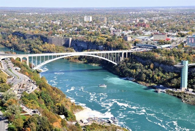 カナダ側にあるスカイロン・タワーより撮影したナイアガラ川とレインボー・ブリッジです。