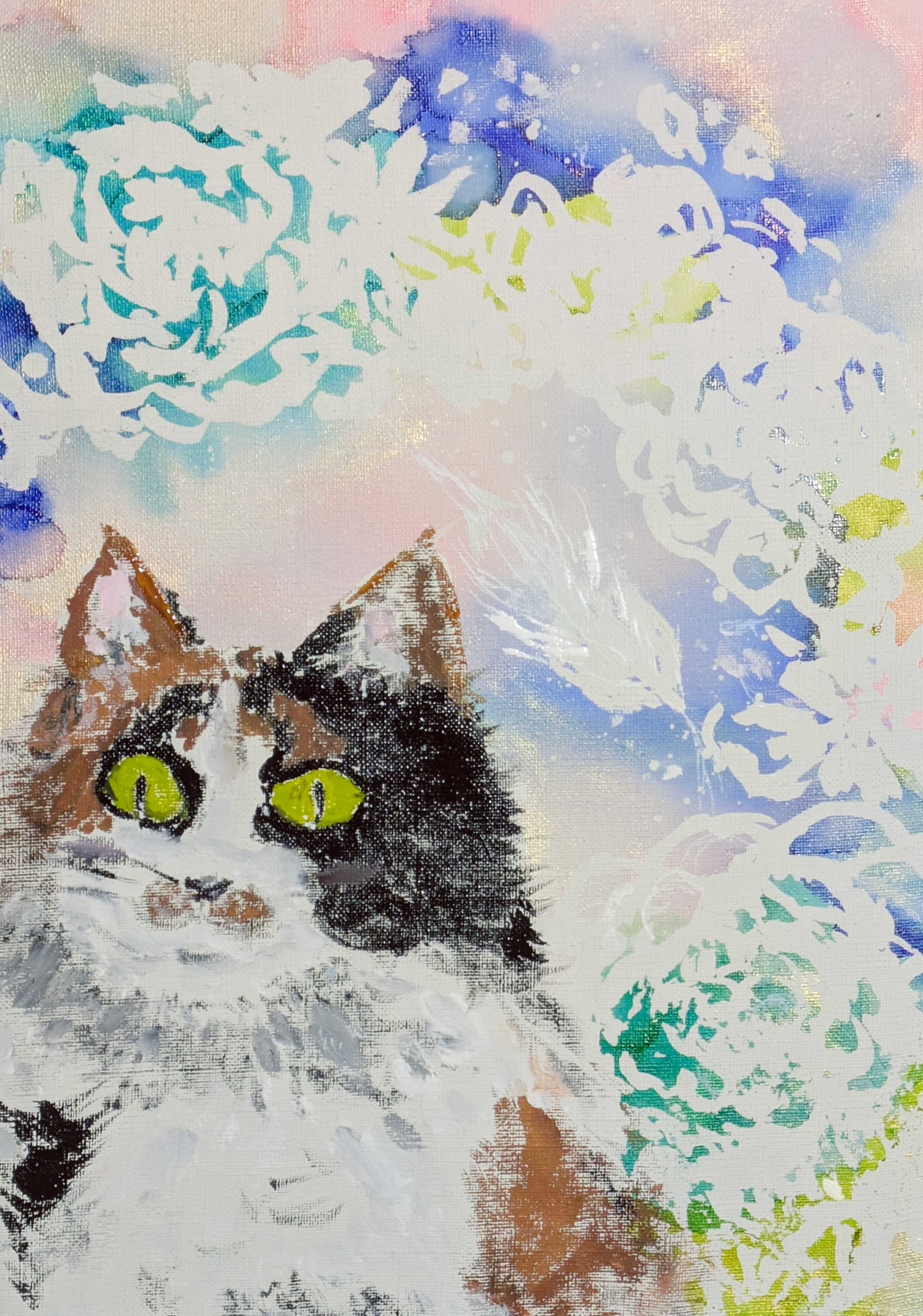 おはようございます。11月24日、振替休日の月曜日。今日は私の"誕生日"でもあり"結婚記念日"です。年齢も半世紀を過ぎたので言うのも何なんですが、53歳になりました。( ̄▽ ̄;)で、結婚から29年を迎えました。(来年30年?!)色々と信じられないのですが、確実に年齢を重ねているのが日に日に感じます。身体の衰えも感じており、先日『大腸カメラ事前検査』(人間ドック並の検査でした)の際にとある部分の異常が見つかりました。大腸よりも気になるそうなので、来月『大腸カメラ』の際に気になる部分の検査もすると言われました。詳細は近々、アメブロ内で書きます。歳を更に取ることが本当に怖い…。誕生日とはいえ、今日もしっかり仕事が入っています。(;´д`)トホホ…(今日は6連勤最終日。在宅仕事は先週終わらせています。)・゚゚・*:.。..。.:*・゚゚・*:.。. .。.:*・゚゚・現在、各公募展等に出展していた作品を紹介しています。本日紹介する作品はこちらです。『Blooming』(2025 ・3)この作品は「ZEN展 銀座選抜展」に出展していた作品です。春をイメージした作品を描きました。モデルは毎回のことですが、我が家の猫です。ちょっと毛が洋猫風の三毛猫。(洋猫の血が少し入っています)背景は大好きなバラの花のリース…のつもりです。インクを垂らした時とアルコールを流し込んだあとの色が思っていたものとは違うものになり、背景は雑な感じの色合いになってしまいました。(赤、ピンク系は特に色が変わりやすい…)私の作品は『一発描き』で仕上げることがほとんどなので、ちょっとあかん…と思ったらボツにします。アルコールインクアートはやり直しがきかないので、いつも焦りますよ。猫絵はいつもの吉祥絵具(チューブ)を使用しています。吉祥 水性 日本画 絵具チューブ 絵具 12色セット絵具も高くなりましたね…。( ´−ω−` )特に指感アートで『吉祥絵具』を多く使っているので減りは早いです。上羽絵惣 チューブ絵具「チューブ入18色セット 小(3204)」メーカー直送品 ※他ブランド商品と併買不可※ 18色入り 黒 茶色 黄土色 赤 朱色 黄色 黄緑 緑 群青色 藍色 胡粉 顔彩 絵具 絵の具 顔料 絵画 日本画 デザイン 絵 色 プレゼント ギフト(代引不可) sale『上羽絵惣』のチューブ絵具は使ったことがないので、一度購入して使用してみようかな?゜.+ε(・ω・`*)з゜+.゜ε(・ω・`*)з゜+.゜ε(・ω・`*)з゜+.゜令和7年度 与謝野町文化祭(展示部門)の様子゜.+ε(・ω・`*)з゜+.゜ε(・ω・`*)з゜+.゜ε(・ω・`*)з゜+.゜*:・☆・:*。皆さんに「素適にHappy!」が訪れますように。*:・☆・:**:・★・:*★*:・★・:*★*:・★・:*私の旧メインブログ『しょこらのオレンジすくえあ』内の☆しょこらの「書ぎゃらりー」☆では、「書道作品(課題もの・オリジナル作品)」を展示しておりますので、課題作品や過去の作品を見てみたい方は是非、見てやってください。m(_"_)mにほんブログ