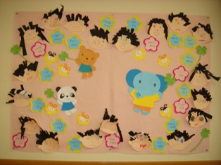 いよいよ今年度最後の壁面です。はさみで髪の毛を作り、自分で貼りました。お顔も上手にかけるようになってまたこのなんとも淋しい時季がやってきました。子どもが私の背中を追って泣いてていたのに 私が子どもの背中をみて涙がこぼれそうになってるあと12日でお別れです。