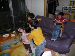 幼稚園が終わって着替え、洗濯物を片づけてから